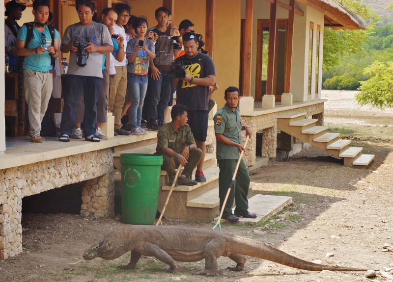Retkellä poikettiin Komodon luonnonpuistona tunnetun saaren lisäksi Rincalla, jossa on Komodoa suurempi mahdollisuus nähdä kookkaita Komodonvaraaneja. Rincalla meitä potkaisikin kunnon onni, sillä näimme lähes 10 liskoa muutaman tunnin aikana! Yhden yllätimme syömästä villisikaa ja eräs ”kaveri” lähti seuraamaan meitä polkua pitkin. Sisäänpääsy saarille on halpaa ja hintaan kuuluu opas. Omin päin saarille ei pääse vaeltamaan, sillä Komodonvaraanit voivat olla arvaamattomia. Niitä on myös turha koettaa pötkiä pakoon, sillä ne juoksevat lähes 20 kilometrin tuntivauhdilla, kiipeävät näppärästi ja osaavat uida todella hyvin. Opas on siis pakollinen ja ainoa vaihtoehto, että saarille ylipäätään pääsee.